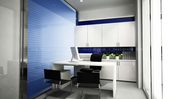 A slight difference from the Mega Village office, the headquarters has a more approachable project brief for the office design. Requirements are to design a workplace that would incorporate a wide range of multi-purpose zones into their headquarters, modern contemporary yet not losing the key traits of a corporate office. White and blue are widely used to achieve the contemporary concept, materials are mostly in polished and mirrored finishing to give the headquarters a touch of posh and classy.