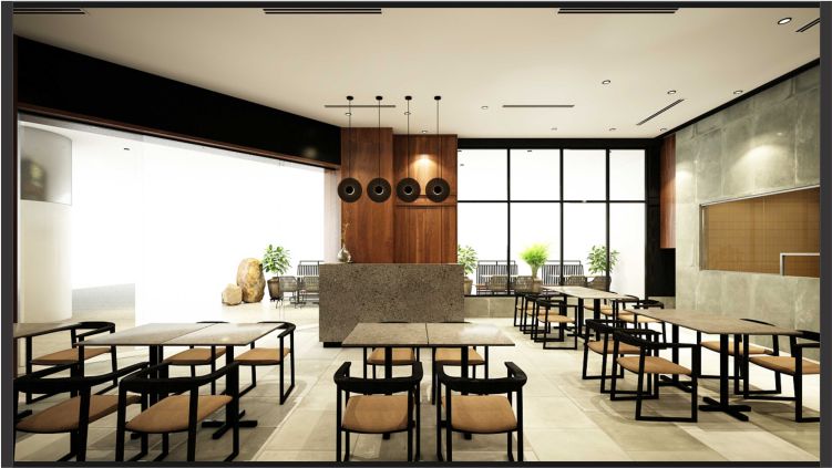 Inside, the restaurant’s warm lighting and use of natural wood textures create a cozy and inviting atmosphere. The combination of modern and industrial elements provides a unique aesthetic that is both trendy and timeless. Bongchu Braised Chicken’s stunning façade design sets it apart from other restaurants in the area. The unique combination of natural wood textures, black spray paint, and spotlights is truly eye-catching and memorable.